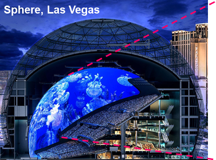 Sphere Entertainment Co. built the world’s highest-resolution immersive LED display plane, featuring a massive 16K resolution, for Sphere in Las Vegas. Spanning 160,000 square feet, it wraps up, over and around the audience creating a fully immersive visual environment. No single commercially available camera on the market could shoot video at the quality and clarity needed for the resolution of Sphere’s display.