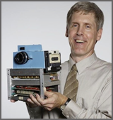 スティーブンサッソン初のデジタルカメラほぼ同時に、1969年にAT&Tのベル研究所のジョージスミスとウィラードボイルは、シリコン構造の電荷を簡単に操作できる半導体メモリの概念である電荷結合デバイス(CCD)を考案しました。同じくAT&TのMichael Tompsettは、今日使用されている電子写真とビデオを最初に実証したCCDイメージセンサーを発明しました。最初の内蔵型デジタルカメラ(1975)は、コダックのエンジニアの功績によるものです。スティーブンサッソンは、CCDセンサーを使用して、コダックの部品箱から、0.01メガピクセルの白黒画像を提供する8ポンドのデバイスを構築しました。