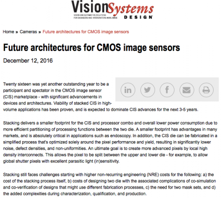 2016年12月12日– 2016年は、CMOSイメージセンサー(CIS)市場に参加し、観客となる素晴らしい年であり、デバイスとアーキテクチャが大幅に進歩しました。大量のアプリケーションでのスタック型CISの実行可能性は証明されており、今後3〜5年間はCISの進歩を支配すると予想されます。